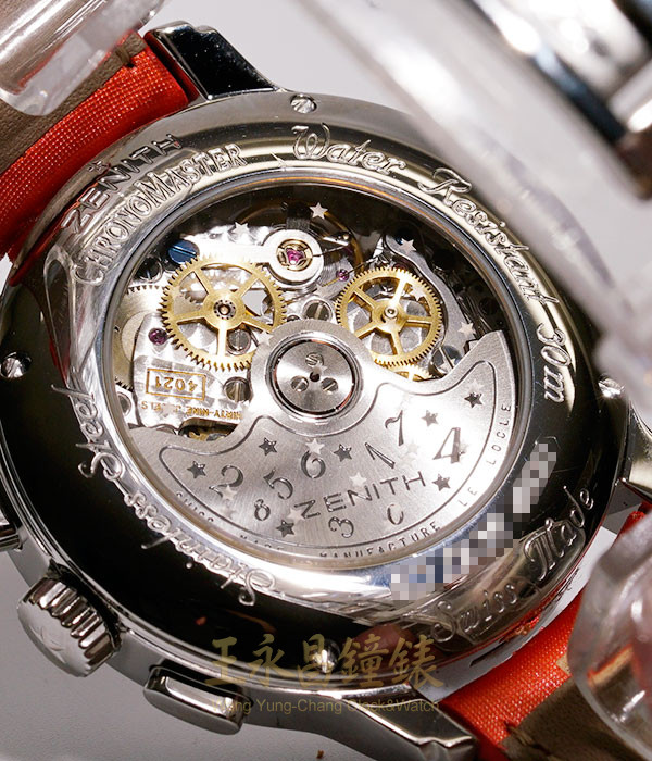 具時.分.小秒針及動力儲存顯示、60秒30分計時、防眩弧型藍寶石水晶玻璃、透明錶背