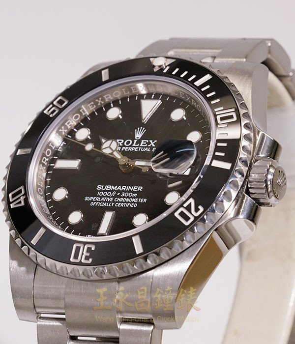 具時.分.秒針及日期顯示、藍色陶瓷合金單向旋轉簡易計時外圈、旋入式錶冠及底蓋、藍寶石水晶玻璃、內圈刻有一圈防偽ROLEX字樣及流水號、亂碼字頭