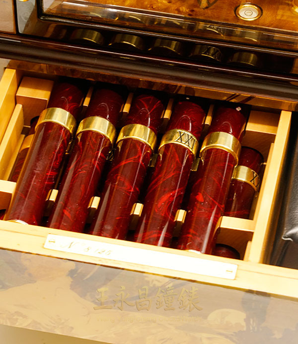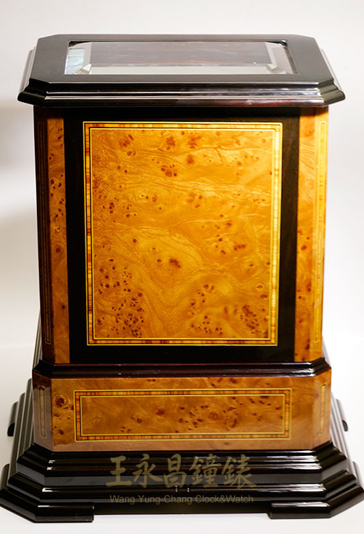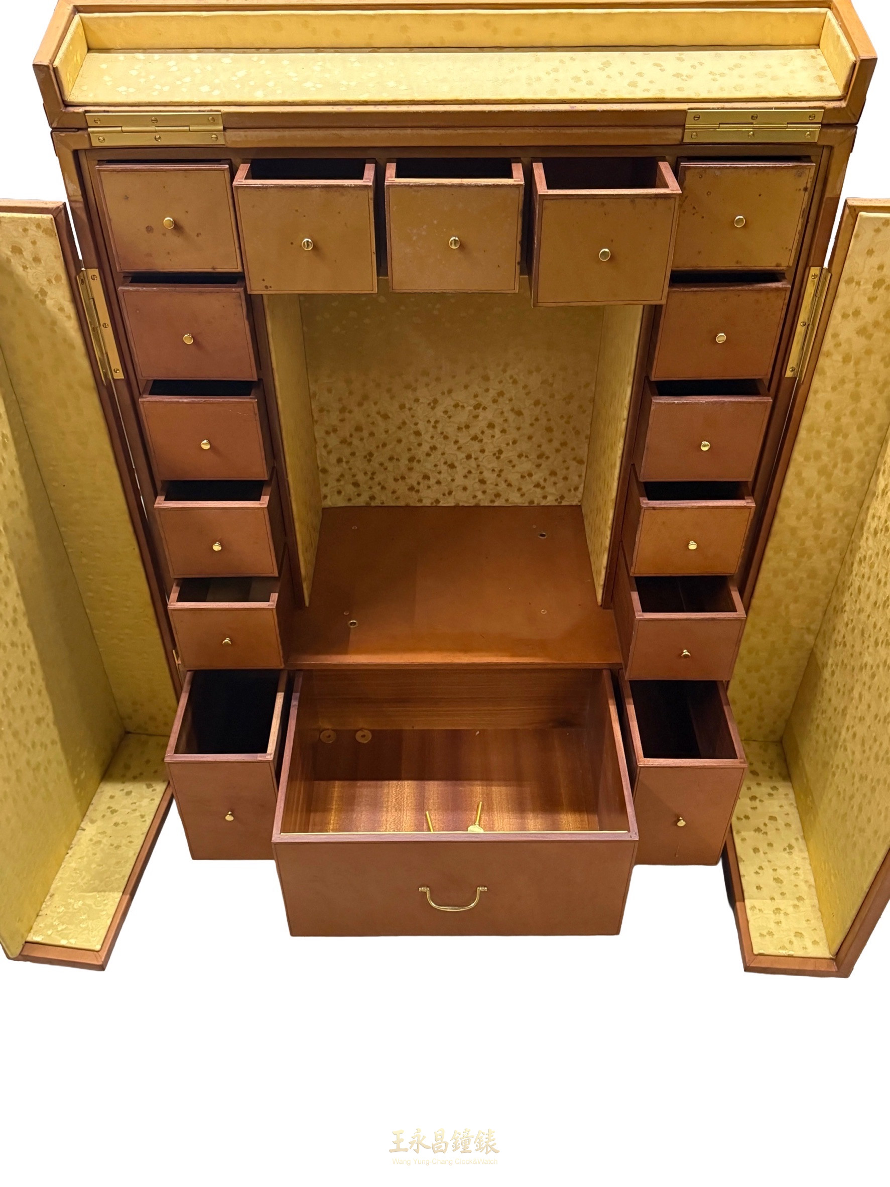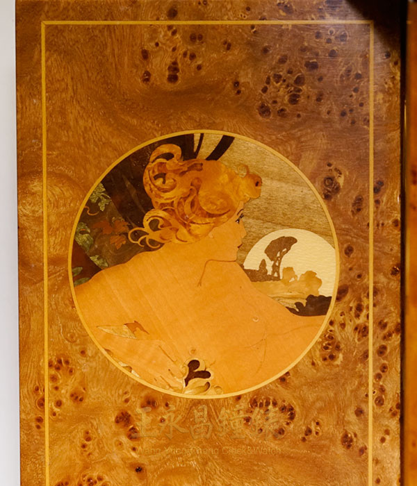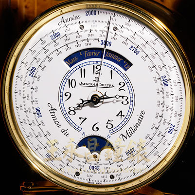 長31CM,寬25CM,高37CM 千禧年木嵌畫空氣鐘(新藝術風格限量版) 「當時間遇上永恆的藝術,每一次呼吸都是傳世經典。」 這不僅僅是一座時鐘,更是一件將瑞士頂級製錶工藝與歐洲古典木嵌畫(Marquetry)完美融合的藝術品。 此款積家 Atmos 空氣鐘屬於極為稀有的「千禧年(du Millénaire)」系列,搭配向新藝術大師慕夏(Alphonse Mucha)致敬的精緻木作外櫃,展現出令人屏息的奢華質感。 千禧年曆法顯示 (Millénaire Dial) 跨越世紀的承諾: 錶盤上最外圈印有從 2000 年至 3000 年的年份刻度,專為記錄千年的時光而設計。 在拍賣市場與收藏圈中皆是一鐘難求的珍品。