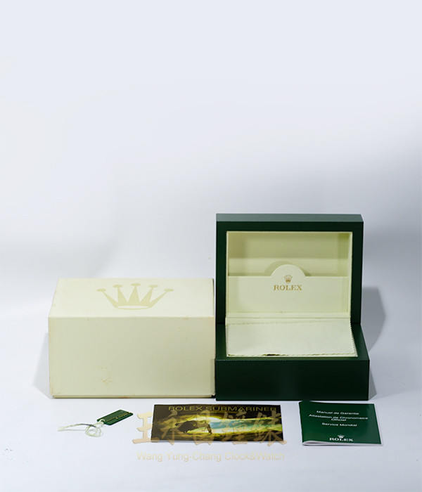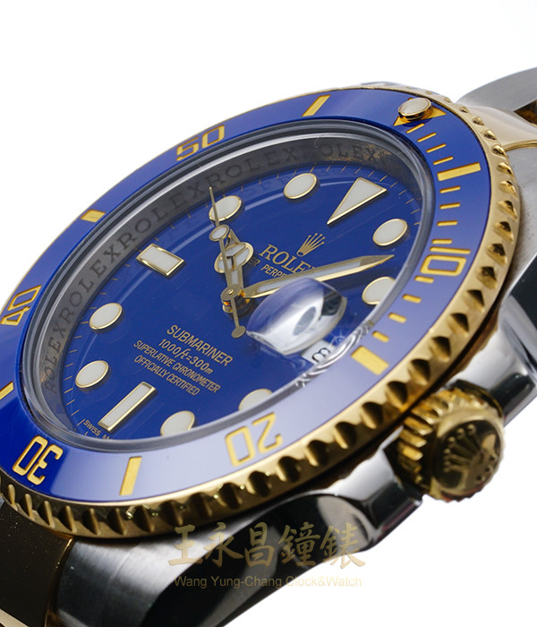 具時.分.秒針及日期顯示、藍色陶瓷合金單向旋轉簡易計時外圈、旋入式錶冠及底蓋、藍寶石水晶玻璃、內圈刻有一圈防偽ROLEX字樣及流水號、亂碼字頭