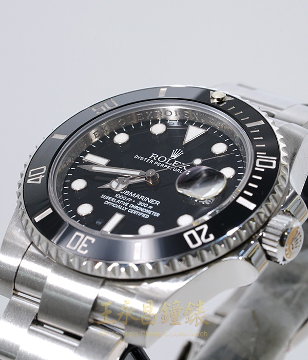 具時.分.秒針及日期顯示、藍色陶瓷合金單向旋轉簡易計時外圈、旋入式錶冠及底蓋、藍寶石水晶玻璃、內圈刻有一圈防偽ROLEX字樣及流水號、亂碼字頭