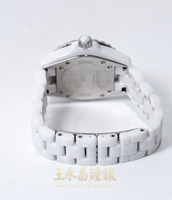 具時.分.秒針及日期顯示、單相可旋轉原鑲鑽外圈、旋入式錶冠、弧形藍寶石水晶玻璃 白色面盤、立體阿拉伯數字時標、螢光指針 原廠白色陶瓷鍊帶