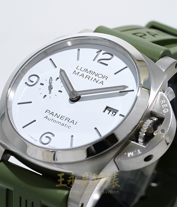 具時.分.小秒針及日期顯示、錶冠護橋、弧型藍寶石水晶玻璃、旋入式底蓋及快拆錶背