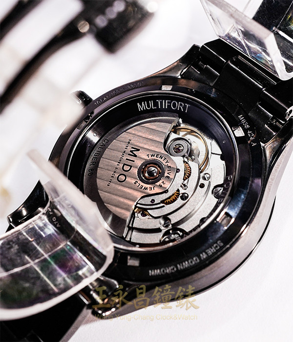 具時.分.秒針.日期及動力儲存顯示、80小時動力儲存、旋入式錶冠及底蓋、防眩弧型藍寶石水晶玻璃、透明錶背 黑色面盤、立體螢光刻度時標、螢光指針