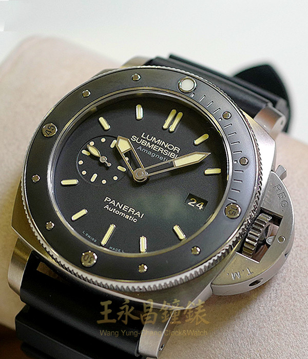 具時.分.小秒針及日期顯示、單向可旋轉陶瓷外圈、弧型藍寶石水晶玻璃、鈦合金龍頭護橋、防磁40,000A/m 黑色面盤、立體螢光刻度時標、螢光指針