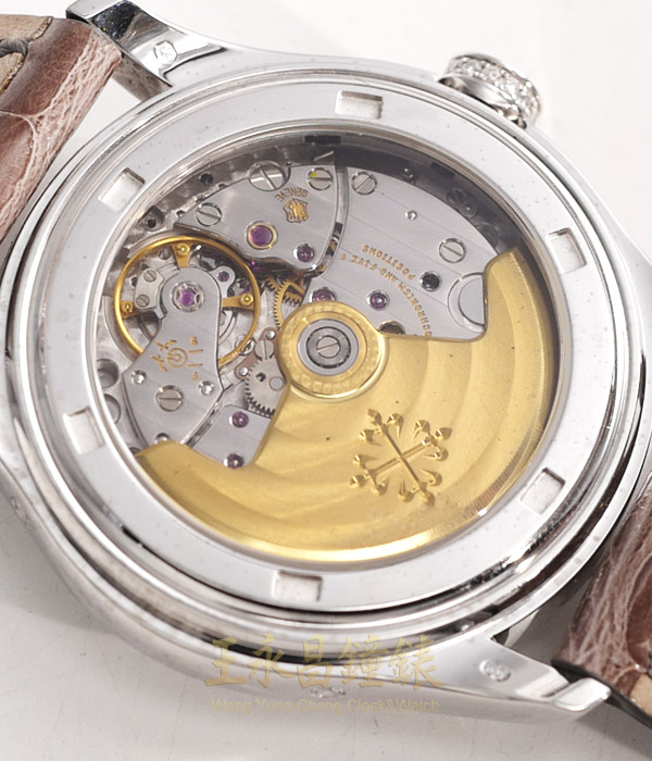 具時.分.秒針.日期.星期.月份及月相盈虧顯示、大小月自動修正的年曆錶、錶圈及錶冠由原廠鑲有鑽石共170顆紅寶石(重1克拉)、鍍銠機芯有魚鱗紋及日內瓦波紋打磨、34顆紅寶石、五方位調校、四臂環形合金擺輪、砝碼補償擺輪、因加百錄避振器裝置、機芯有日內瓦印記、21K金自動盤、單向自動上鍊、弧形藍寶石水晶玻璃、透明錶背
