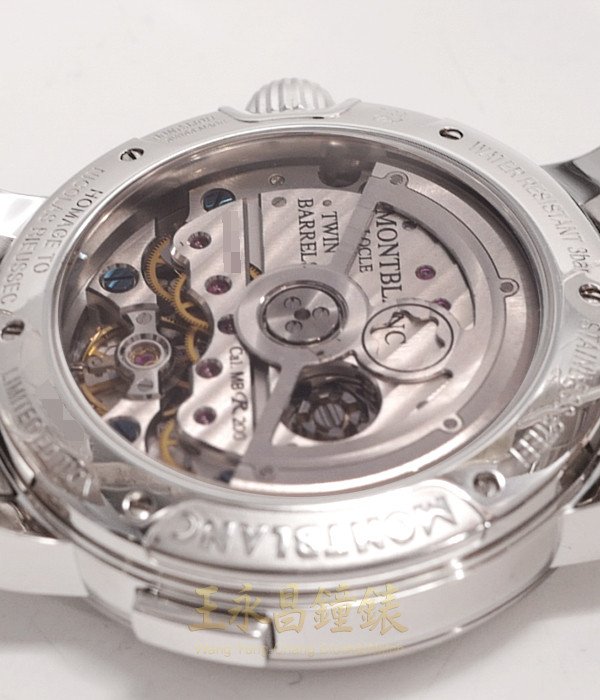 具時.分針.60秒30分積分盤、弧形藍寶匙水晶錶鏡、透明錶背