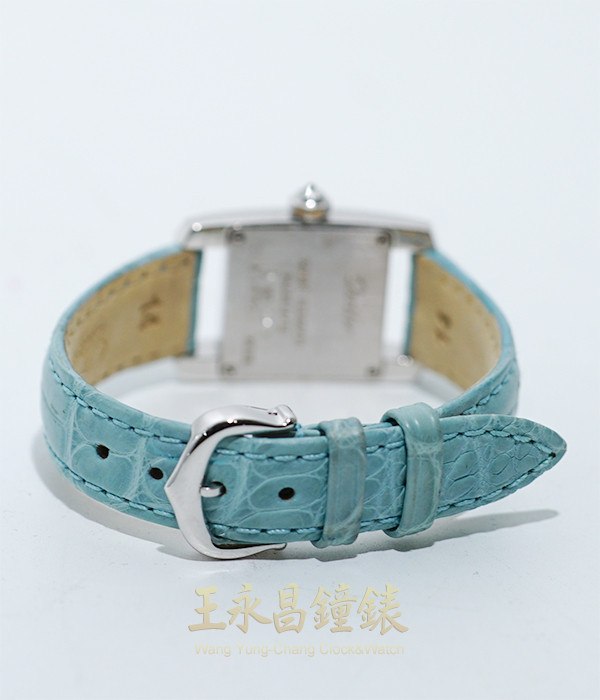 具時.分針顯示、弧形藍寶石時水晶錶鏡、錶冠及錶圈上有原鑲鑽石、錶鏈長約17CM
