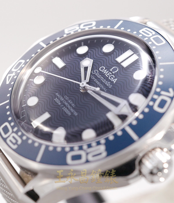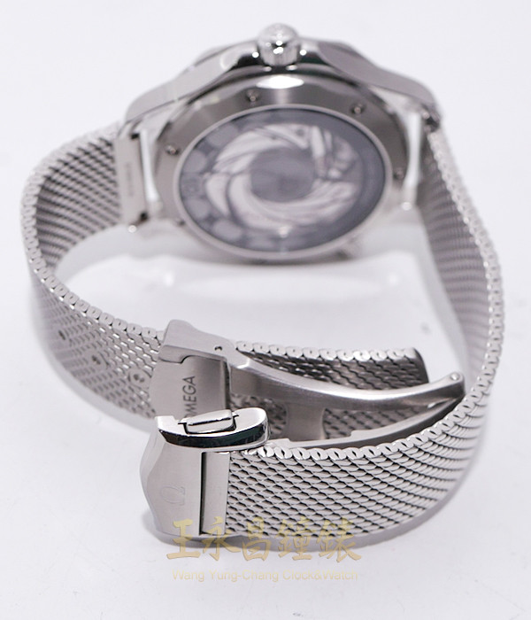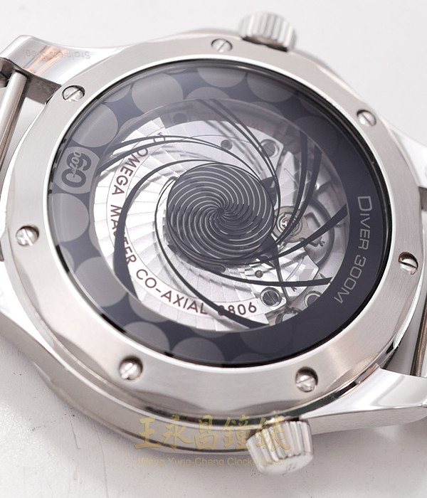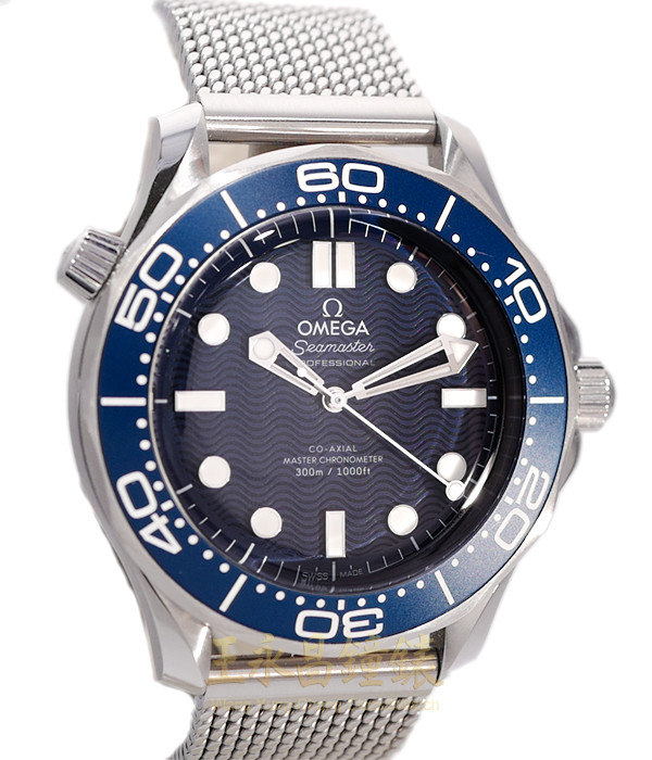 具時.分.秒針顯示、單向可旋轉陶瓷環外圈、弧形藍寶石水晶錶鏡、排氦裝置、透明錶背、錶背上有造型膛線圖案及會動的龐德圖樣 這款42毫米海馬潛水300米腕錶採用不鏽鋼製成,於2022年推出,慶祝詹姆斯龐德60週年紀念,設有藍色草酸陽極氧化鋁錶圈,飾以鐳射鐫刻波浪圖案,啟發自1995年上映的《黃金眼》(GoldenEye)中詹姆斯龐德佩戴的海馬潛水300米腕錶。潛水刻度上的傳統倒置三角形為「60」紀念字樣所取代。 錶背呈現電影經典開場片段的龐德剪影和螺旋槍管設計,其上覆有經微結構金屬化修飾的藍寶石水晶。「摩爾紋」動態效果與「棒棒糖」秒針的旋轉相連繫。 磨砂不鏽鋼錶鏈為金屬造型增添質感,具有與龐德在《007生死交戰》(No Time To Die)中佩戴的鈦金屬腕錶相同的網紋風格。 腕錶搭載歐米茄8806同軸擒縱大師天文台認證機芯。 腕錶隨附飾有原創潛水300米腕錶圖案的藍色木質錶盒,其上有三個圓點,靈感源自經典龐德電影的開場,右邊設有一個秘密按鈕。