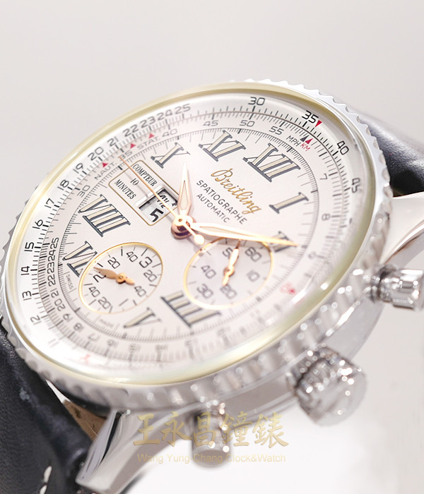 具時.分.小秒針及日期顯示、雙向可旋轉飛行滑尺外圈、60秒10分3小時計時、防眩弧形藍寶石水晶錶鏡,十分鐘倒數計時