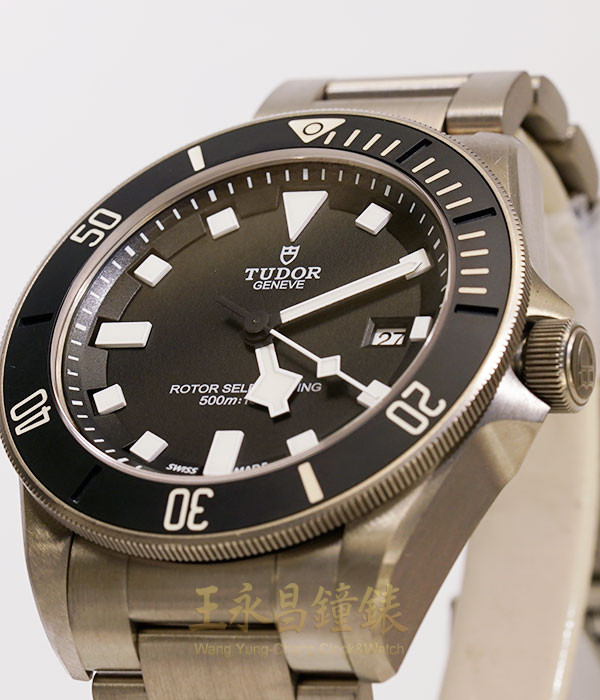 具時.分.秒及日期顯示、簡易計時黑色鈦合金可單向旋轉外圈、旋入式錶冠及底蓋、專為潛水衣設計的伸縮型帶扣、藍寶石水晶玻璃