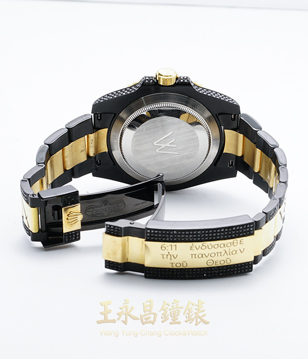 面盤上有後加的鑲鑽寶石劍,錶鏈上有身體的裝備圖樣,錶殼及錶鏈鑲滿黑色寶石