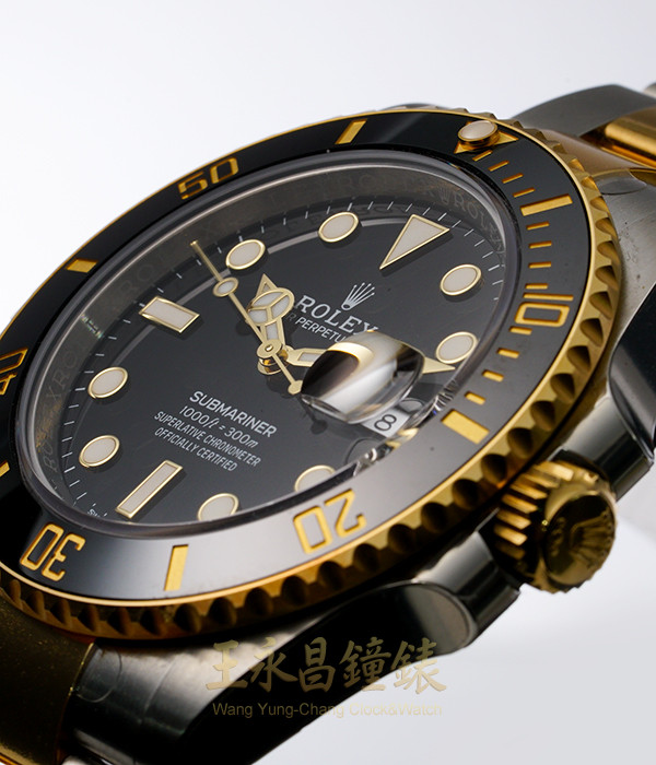 具時.分.秒針及日期顯示、黑色陶瓷單向旋轉簡易計時外圈、旋入式錶冠及底蓋、藍寶石水晶玻璃、面盤6點方位有新款設計的勞力士皇冠標示、內圈刻有一圈防偽ROLEX字樣及流水號、亂碼字頭