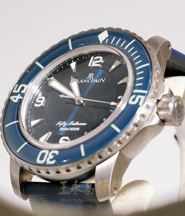 具時.分.秒針及日期顯示、弧型保護鏡單向可旋轉外圈、旋入式錶冠及底蓋、弧型藍寶石水晶玻璃、透明錶背 深藍色面盤、立體螢光刻度及阿拉伯數字時標、螢光劍形指針 藍圈、藍面 NO5015012B040NO52A