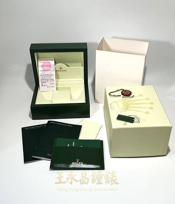 具時.分.秒針及日期顯示、藍色陶瓷合金單向旋轉簡易計時外圈、旋入式錶冠及底蓋、藍寶石水晶玻璃、內圈刻有一圈防偽ROLEX字樣及流水號、亂碼字頭