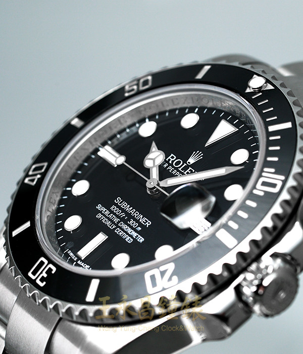 具時.分.秒針及日期顯示、藍色陶瓷合金單向旋轉簡易計時外圈、旋入式錶冠及底蓋、藍寶石水晶玻璃、內圈刻有一圈防偽ROLEX字樣及流水號、亂碼字頭
