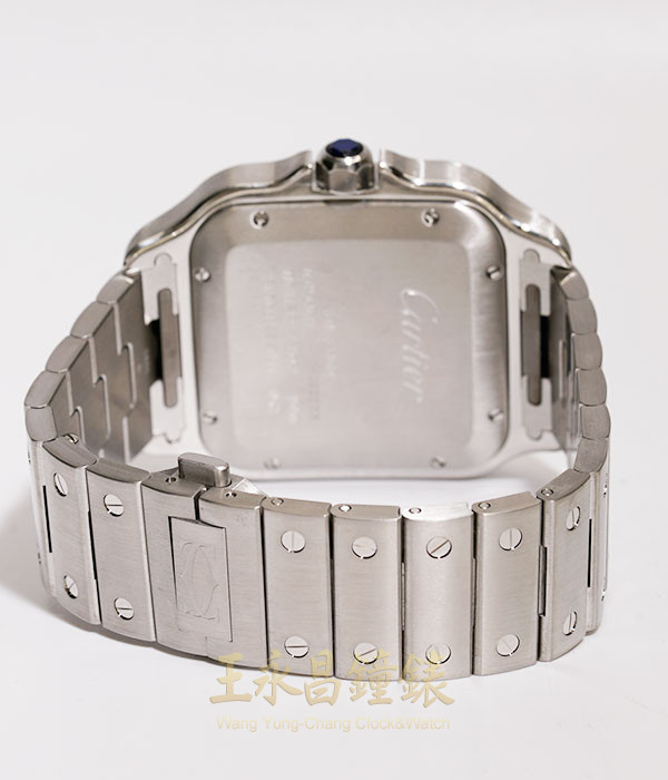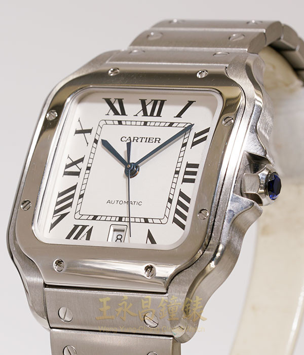 具時.分.秒針及日期顯示、弧型藍寶石水晶玻璃、錶冠上有一顆藍色合成尖晶石、快拆錶帶