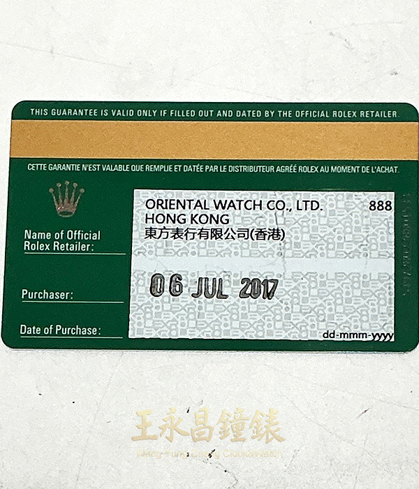具時.分.秒針顯示、旋入式錶冠及底蓋、藍寶石水晶玻璃、內圈刻有一圈防偽ROLEX字樣及流水號碼
