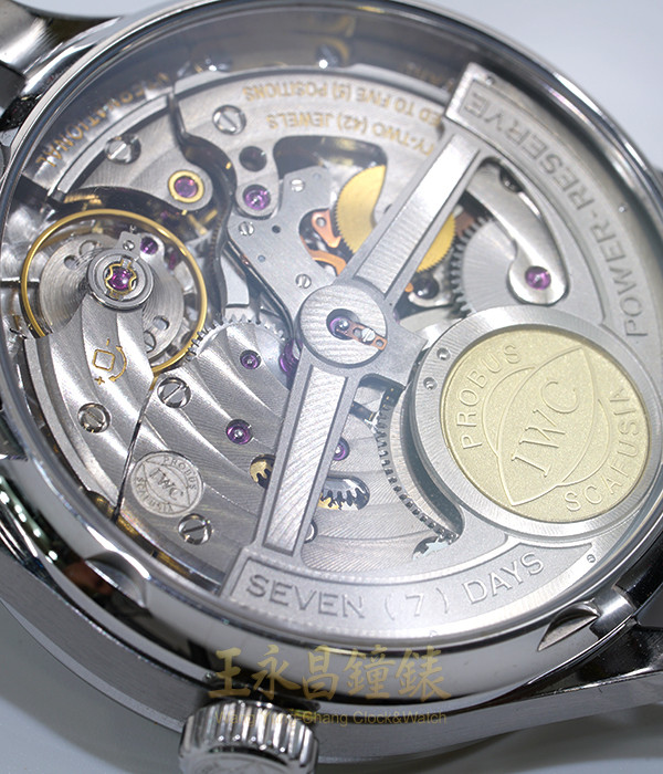 具時.分.小秒針.日期及八日動力儲存、防眩弧型藍寶石水晶玻璃、透明錶背