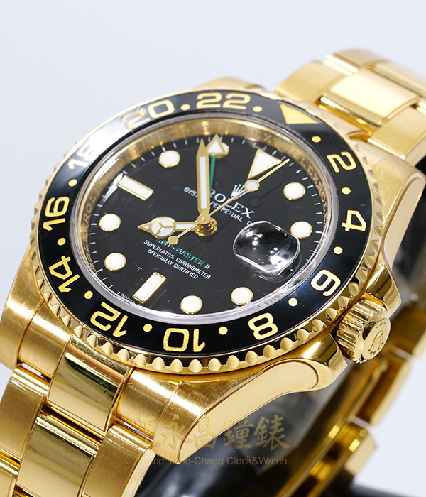 具時.分.秒針.日期及兩地時間顯示、雙向可旋轉黑色陶瓷外圈、藍寶石水晶玻璃、綠色第二時區針、內圈刻有一圈防偽ROLEX字樣及流水號碼、